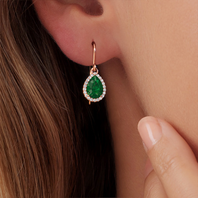 If you are looking for traditional and personal drop earrings, then these will fit you perfectly. You have the option to add your birthstones to these drop earrings. Each month has its own birthstone. You may use your own birthstone gemstone or that of your children. A priceless gift, even if it is for yourself. Our expert jeweller will set the selected stones in your drop earrings with utter precision, so light reflects evenly from every angle. Here, 7x5 mm pear emerald gemstones were used to adorn these rose gold elegant Seline per drop earrings. The Seline per earrings are unique pieces of jewellery because they can be customized to your liking.. As soon as you finished designing your traditional drop earrings with our online tool, our goldsmiths will start their creative process of making your drop earrings. This will be done with passion and care, according ancient crafting. On top of that, our jewels are made of eco-friendly materials. If you want specific changes made to your Seline per drop earrings, that are unavailable in our online tool, please feel free to contact our expert designers. Are you on a budget? Please feel free to contact us, so we can go discuss your options. We offer our drop earrings at guaranteed best price, because we make them to order. You won't find such a price anywhere else!To make it easier for you, we offer a 30 day return policy. Check our terms and conditions.