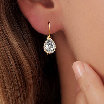 If you are looking for traditional and personal drop earrings, then these will fit you perfectly. You have the option to add your birthstones to these drop earrings. Each month has its own birthstone. You may use your own birthstone gemstone or that of your children. A priceless gift, even if it is for yourself. Our expert jeweller will set the selected stones in your drop earrings with utter precision, so light reflects evenly from every angle. Here, 7x5 mm pear cz-stones gemstones were used to adorn these gold elegant Seline per drop earrings. The Seline per earrings are unique pieces of jewellery because they can be customized to your liking.. As soon as you finished designing your traditional drop earrings with our online tool, our goldsmiths will start their creative process of making your drop earrings. This will be done with passion and care, according ancient crafting. On top of that, our jewels are made of eco-friendly materials. If you want specific changes made to your Seline per drop earrings, that are unavailable in our online tool, please feel free to contact our expert designers. Are you on a budget? Please feel free to contact us, so we can go discuss your options. We offer our drop earrings at guaranteed best price, because we make them to order. You won't find such a price anywhere else!To make it easier for you, we offer a 30 day return policy. Check our terms and conditions.