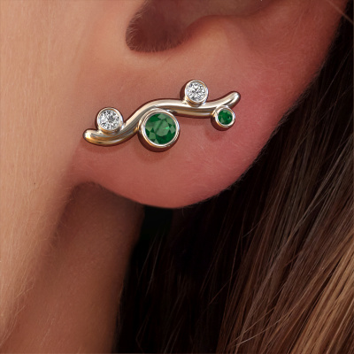 How would you describe your style? Are you looking for something slightly different? These fantasy graceful white gold stud earrings are unique and created by our expert goldsmiths. These fantasy stud earrings are set with emerald. Each of the emerald is carefully selected, because we believe your stud earrings should be adorned with nothing but the most exquisite gemstones. Wouldn't you agree? The Jin made just for you, with great attention to detail and design.. The best part of these graceful stud earrings is that you can customize it to your own liking. Your style, your choice, your stud earrings. On top of that, your fantasy white gold stud earrings will be made by hand with eco-friendly materials! Please feel free to easily customize the stud earrings, using our online tool.Because we design and deliver our own stud earrings, we can offer you stud earrings at a price you won't find anywhere else. stud earrings are made to order, which helps prevent excess supplies, so we can make you a great price offer. We understand it feels risky, buying your stud earrings online, but we will gladly assist in the designing process, taking your budget into consideration. To make it easier for you, we offer a 30 day return policy. Check our terms and conditions.