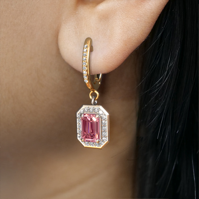 With a pair of exclusive drop earrings, every woman truly stands out. At DiamondsByMe, we create exclusive and extraordinary jewellery and we make use of the finest precious metals and gemstones. These exclusive white gold drop earrings are a true work of art! Each tiny detail has been made with patience and passion by our expert jeweller. This requires a keen eye and skilful hand in order for the ring to be carefully created to perfection. And this is exactly what our expert jewellers strive for, perfection! The exquisite pink lab grown diamonds are set in a way making them seem to shine even brighter. This gives the drop earrings an extra glamorous look. Shown above are our white gold Dodie 2 drop earrings, set with emerald cut pink lab grown diamond. The Dodie 2 earrings are made just for you by our master goldsmith in our own artisan studio.. How do you like these exclusive white gold drop earrings? Simply customize this Dodie 2 drop earrings, using our online tool. Subsequently, your personal halo Dodie 2 drop earrings will be made by hand by our goldsmiths. Precious metals and gemstones can be customized to your liking. Do you have specific preferences which are unavailable in our online tool? Please feel free to contact us. We will customize your personal exclusive drop earrings to your liking. Are you on a budget? Please feel free to contact us, so we can go discuss your options. We offer our drop earrings at guaranteed best price, because we make them to order. You won't find such a price anywhere else! To make it easier for you, we offer a 30 day return policy. Check our terms and conditions.