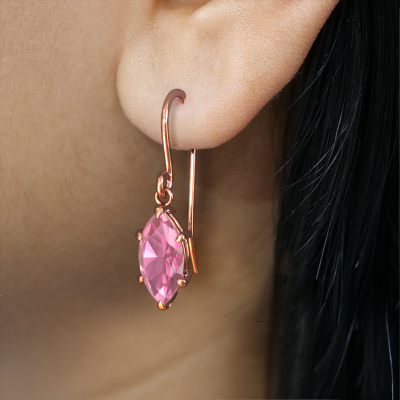 What could possibly be more stunning than a pair of stunning drop earrings? These rose gold Laurie MRQ 1 drop earrings are a true eye-catcher. These affordable drop earrings are set with marquise pink sapphire. We collaborate with the best suppliers of gemstones and they select our gemstones with great care. Your drop earrings are made by hand in our own artisan studio by our expert goldsmiths. Customized fashionable affordable drop earrings are the perfect gift! New exquisite designs are added daily by our team of passionate goldsmiths. And each design can be customized. Simply customize the precious metals and the colour of gemstones which will be used, for example. This makes your design of the fashionable Laurie MRQ 1 drop earrings truly unique!After receiving your order, our goldsmiths will passionately start the creative process of making your drop earrings in our own studio. Because we don't have a big stockpile, these costs will not be passed on to you. Our pricing is proof of that! We offer top quality jewels at lowest price, guaranteed.To make it easier for you, we offer a 30 day return policy. Check our terms and conditions.