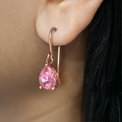 If you are looking for trendy and personal drop earrings, then these will fit you perfectly. You have the option to add your birthstones to these drop earrings. Each month has its own birthstone. You may use your own birthstone gemstone or that of your children. A priceless gift, even if it is for yourself. Our expert jeweller will set the selected stones in your drop earrings with utter precision, so light reflects evenly from every angle. Here, 8x6 mm pear pink sapphire gemstones were used to adorn these rose gold fine Laurie PER 1 drop earrings. The Laurie PER 1 earrings are made by a team of passionate goldsmiths and designers. This will make your unique crown jewel eye-catching.. The best part of these fine drop earrings is that you can customize it to your own liking. Your style, your choice, your drop earrings. On top of that, your trendy rose gold drop earrings will be made by hand with eco-friendly materials! Please feel free to easily customize the drop earrings, using our online tool. By using our modern techniques, we can design and customize the finest quality jewels with the utmost care for you. Our drop earrings are always priced 30 percent lower than other jewellers. We make drop earrings to order so we don't have to maintain a large stock. If you have a certain budget, we are more than happy to advice you accordingly.To make it easier for you, we offer a 30 day return policy. Check our terms and conditions.