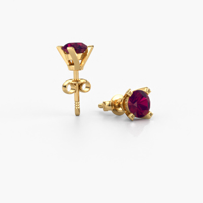 Solitaire stud earrings are classic yet fashionable pieces of jewellery. In solitaire stud earrings, the prong setting is open and only 1 stone is set, which helps reflect light on the gemstone from every angle. Because the rhodolite are positioned higher, these classic stud earrings become truly eye-catching. We carefully create each detail of these solitaire stud earrings by hand. Our expert goldsmiths set the rhodolite in these gold stud earrings with the utmost precision, so light reflects evenly from every angle. The stud earrings are set with 5 mm round rhodolite. The Isa earrings are passionately made by one of our master goldsmiths.. Our goldsmiths passionately create your customized stud earrings to your liking with the utmost care. The gold set stud earrings, as shown here, can be customized using our online tool. Feel free to ask our jewel designers for assistance if you want changes made which are unavailable in our online tool. We are happy to answer your questions. By using our modern techniques, we can design and customize the finest quality jewels with the utmost care for you. Our stud earrings are always priced 30 percent lower than other jewellers. We make stud earrings to order so we don't have to maintain a large stock. If you have a certain budget, we are more than happy to advice you accordingly. To make it easier for you, we offer a 30 day return policy. Check our terms and conditions.