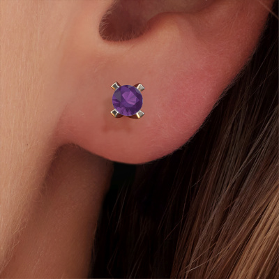 Solitaire stud earrings are classic yet fashionable pieces of jewellery. In solitaire stud earrings, the prong setting is open and only 1 stone is set, which helps reflect light on the gemstone from every angle. Because the amethysten are positioned higher, these classic stud earrings become truly eye-catching. We carefully create each detail of these solitaire stud earrings by hand. Our expert goldsmiths set the amethysten in these platinum stud earrings with the utmost precision, so light reflects evenly from every angle. The stud earrings are set with 5 mm round amethysten. The Isa earrings are passionately made by one of our master goldsmiths.. Our goldsmiths passionately create your customized stud earrings to your liking with the utmost care. The platinum set stud earrings, as shown here, can be customized using our online tool. Feel free to ask our jewel designers for assistance if you want changes made which are unavailable in our online tool. We are happy to answer your questions. By using our modern techniques, we can design and customize the finest quality jewels with the utmost care for you. Our stud earrings are always priced 30 percent lower than other jewellers. We make stud earrings to order so we don't have to maintain a large stock. If you have a certain budget, we are more than happy to advice you accordingly. To make it easier for you, we offer a 30 day return policy. Check our terms and conditions.