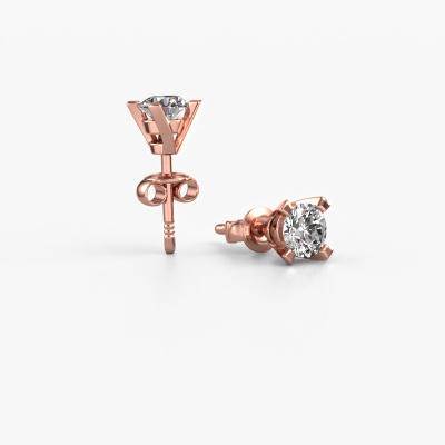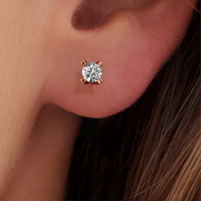 Solitaire stud earrings are classic yet fashionable pieces of jewellery. In solitaire stud earrings, the prong setting is open and only 1 stone is set, which helps reflect light on the gemstone from every angle. Because the diamonds are positioned higher, these classic stud earrings become truly eye-catching. We carefully create each detail of these solitaire stud earrings by hand. Our expert goldsmiths set the diamonds in these rose gold stud earrings with the utmost precision, so light reflects evenly from every angle. The stud earrings are set with 0.25 crt round diamonds. The Isa earrings are passionately made by one of our master goldsmiths.. Our goldsmiths passionately create your customized stud earrings to your liking with the utmost care. The rose gold set stud earrings, as shown here, can be customized using our online tool. Feel free to ask our jewel designers for assistance if you want changes made which are unavailable in our online tool. We are happy to answer your questions. By using our modern techniques, we can design and customize the finest quality jewels with the utmost care for you. Our stud earrings are always priced 30 percent lower than other jewellers. We make stud earrings to order so we don't have to maintain a large stock. If you have a certain budget, we are more than happy to advice you accordingly. To make it easier for you, we offer a 30 day return policy. Check our terms and conditions.