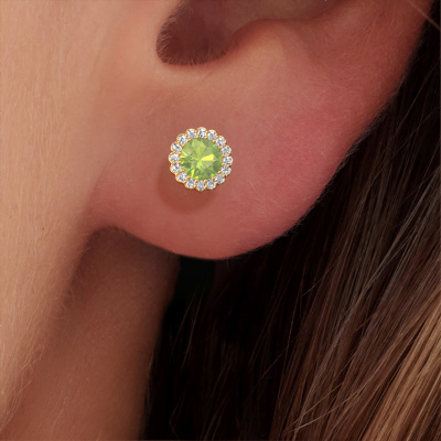 We believe this set of flower Queen earrings, set with exquisite round peridot, look best when set with diamonds. But the best part is that you get to choose your own birthstones to customize the unique Queen gold earrings to your liking. In the example shown above they are set with peridot 4.2 mm. Each gemstone is selected with great care and the utmost precision for a maximum shine. By using a combination of the latest modern techniques, combined with ancient crafting, we can make all our earrings in our own studio. Each jewel is made to order. This is advantageous because we can offer you a price you won't find anywhere else.To make it easier for you, we offer a 30 day return policy. Check our terms and conditions.