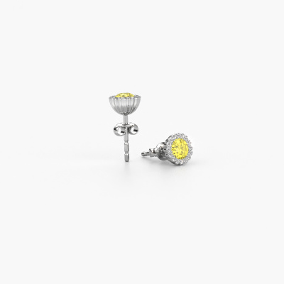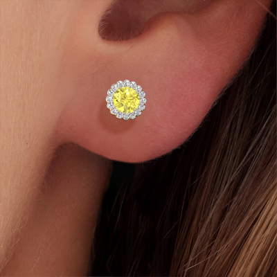 We believe this set of flower Queen earrings, set with exquisite round yellow lab grown diamond, look best when set with diamonds. But the best part is that you get to choose your own birthstones to customize the unique Queen platinum earrings to your liking. In the example shown above they are set with yellow lab grown diamond 4.2 mm. Each gemstone is selected with great care and the utmost precision for a maximum shine.