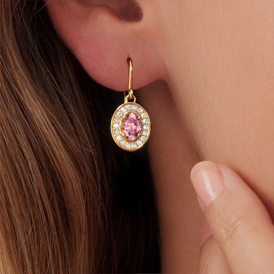 This is our set of classic Layne 1 drop earrings. In this example the drop earrings are set with oval pink lab grown diamond. Each of our pink lab grown diamonds gemstones is carefully selected and positioned in your drop earrings with great precision so light hits the pink lab grown diamond from every angle. We believe these flower gold drop earrings look best set with coloured gemstones. But that is entirely up to you. What could possibly be more beautiful than personally designed classic drop earrings, handmade by yours truly? Please, feel free to customize each model by choosing different precious metals and gemstones. This makes your drop earrings truly unique. These drop earrings can be customized to your liking. It goes without saying that you can also ask us for help. We are more than willing to assist in designing your classic drop earrings. If you like but still have specific wishes concerning customizing your design, such as adding a gemstone which isn't mentioned in the list, feel free to contact us. We will gladly inform you on different options.Because we design and deliver our own drop earrings, we can offer you drop earrings at a price you won't find anywhere else. drop earrings are made to order, which helps prevent excess supplies, so we can make you a great price offer. We understand it feels risky, buying your drop earrings online, but we will gladly assist in the designing process, taking your budget into consideration.To make it easier for you, we offer a 30 day return policy. Check our terms and conditions.
