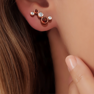 The graceful rose gold Ryan earrings are set with stunning round garnet. These earrings are ideally combined with coloured gemstones, but if you prefer other gemstones, feel free to choose from our collection. Our expert jewellers would love to create handmade earrings for you in our own crafting studio. We use a unique concept, a perfect combination of ancient craftsmanship and the latest modern techniques. This enables us to design your earrings to perfection. The earrings, as shown here, are set with garnet 4 mm. The best part of these graceful earrings is that you can customize it to your own liking. Your style, your choice, your earrings. On top of that, your trendy rose gold earrings will be made by hand with eco-friendly materials! Please feel free to easily customize the earrings, using our online tool.De Ryan earrings are passionately made by one of our master goldsmiths.By using our modern techniques, we can design and customize the finest quality jewels with the utmost care for you. Our earrings are always priced 30 percent lower than other jewellers. We make earrings to order so we don't have to maintain a large stock. If you have a certain budget, we are more than happy to advice you accordingly.To make it easier for you, we offer a 30 day return policy. Check our terms and conditions.