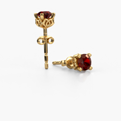 The solitaire gold Ize earrings are set with stunning round garnet. These earrings are ideally combined with coloured gemstones, but if you prefer other gemstones, feel free to choose from our collection. Our expert jewellers would love to create handmade earrings for you in our own crafting studio. We use a unique concept, a perfect combination of ancient craftsmanship and the latest modern techniques. This enables us to design your earrings to perfection. The earrings, as shown here, are set with garnet 5 mm. The best part of these solitaire earrings is that you can customize it to your own liking. Your style, your choice, your earrings. On top of that, your vintage gold earrings will be made by hand with eco-friendly materials! Please feel free to easily customize the earrings, using our online tool.De Ize earrings are made just for you by our master goldsmith in our own artisan studio.Are you on a budget? Please feel free to contact us, so we can go discuss your options. We offer our earrings at guaranteed best price, because we make them to order. You won't find such a price anywhere else!To make it easier for you, we offer a 30 day return policy. Check our terms and conditions.