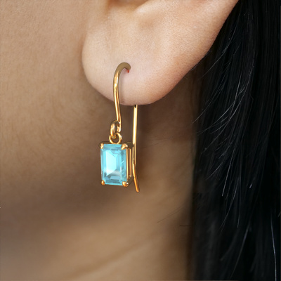 What could possibly be more stunning than a pair of stunning drop earrings? These gold Laurie EME 1 drop earrings are a true eye-catcher. These solitaire drop earrings are set with emerald cut blue topaz. We collaborate with the best suppliers of gemstones and they select our gemstones with great care. Your drop earrings are made by hand in our own artisan studio by our expert goldsmiths. Our goldsmiths passionately create your customized drop earrings to your liking with the utmost care. The gold set drop earrings, as shown here, can be customized using our online tool. Feel free to ask our jewel designers for assistance if you want changes made which are unavailable in our online tool. We are happy to answer your questions.Are you on a budget? Please feel free to contact us, so we can go discuss your options. We offer our drop earrings at guaranteed best price, because we make them to order. You won't find such a price anywhere else!To make it easier for you, we offer a 30 day return policy. Check our terms and conditions.
