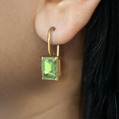 If you are looking for modern and personal drop earrings, then these will fit you perfectly. You have the option to add your birthstones to these drop earrings. Each month has its own birthstone. You may use your own birthstone gemstone or that of your children. A priceless gift, even if it is for yourself. Our expert jeweller will set the selected stones in your drop earrings with utter precision, so light reflects evenly from every angle. Here, 8x6 mm emerald cut tourmaline green gemstones were used to adorn these gold charming Cleo EME drop earrings. The Cleo EME earrings are passionately made by one of our master goldsmiths.. Customized modern charming drop earrings are the perfect gift! New exquisite designs are added daily by our team of passionate goldsmiths. And each design can be customized. Simply customize the precious metals and the colour of gemstones which will be used, for example. This makes your design of the modern Cleo EME drop earrings truly unique! By using a combination of the latest modern techniques, combined with ancient crafting, we can make all our drop earrings in our own studio. Each jewel is made to order. This is advantageous because we can offer you a price you won't find anywhere else.To make it easier for you, we offer a 30 day return policy. Check our terms and conditions.
