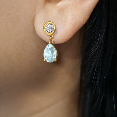What could possibly be more stunning than a pair of stunning drop earrings? These gold Lacey drop earrings are a true eye-catcher. These graceful drop earrings are set with pear aquamarine. We collaborate with the best suppliers of gemstones and they select our gemstones with great care. Your drop earrings are made by hand in our own artisan studio by our expert goldsmiths. Customized fantasy graceful drop earrings are the perfect gift! New exquisite designs are added daily by our team of passionate goldsmiths. And each design can be customized. Simply customize the precious metals and the colour of gemstones which will be used, for example. This makes your design of the fantasy Lacey drop earrings truly unique!After receiving your order, our goldsmiths will passionately start the creative process of making your drop earrings in our own studio. Because we don't have a big stockpile, these costs will not be passed on to you. Our pricing is proof of that! We offer top quality jewels at lowest price, guaranteed.To make it easier for you, we offer a 30 day return policy. Check our terms and conditions.
