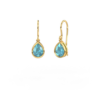 Solitaire earrings are both a fashionable and a trendy piece of jewellery. Solitaire earrings have an open prong setting, therefore, light reflects beautifully on the gemstones. Because the blue topaz are set high, these fashionable earrings are a stunning eye-catcher. We will create your charming earrings by hand with the utmost care in our DiamondsByMe studio. For maximum shine, our goldsmith sets the blue topaz in the gold earrings with great care. These charming earrings are set with pear blue topaz of 8x6 mm. De Lavon PER earrings are unique pieces of jewellery because they can be customized to your liking.. As soon as you finished designing your fashionable earrings with our online tool, our goldsmiths will start their creative process of making your earrings. This will be done with passion and care, according ancient crafting. On top of that, our jewels are made of eco-friendly materials. If you want specific changes made to your Lavon PER earrings, that are unavailable in our online tool, please feel free to contact our expert designers.After receiving your order, our goldsmiths will start the creative process of making your Lavon PER earrings. We don't keep stock. This is advantageous because these costs will not be passed on to you. Therefore, we can offer jewellery at exceptionally low prices. To make it easier for you, we offer a 30 day return policy. Check our terms and conditions.