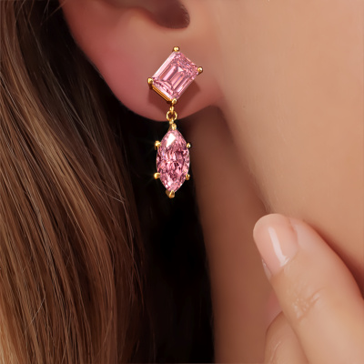 With a pair of exclusive drop earrings, every woman truly stands out. At DiamondsByMe, we create fashionable and extraordinary jewellery and we make use of the finest precious metals and gemstones. These exclusive gold drop earrings are a true work of art! Each tiny detail has been made with patience and passion by our expert jeweller. This requires a keen eye and skilful hand in order for the ring to be carefully created to perfection. And this is exactly what our expert jewellers strive for, perfection! The exquisite pink lab grown diamonds are set in a way making them seem to shine even brighter. This gives the drop earrings an extra glamorous look. Shown above are our gold Toi et Moi EME MRQ drop earrings, set with emerald cut pink lab grown diamond. The Toi et Moi EME MRQ earrings are unique pieces of jewellery because they can be customized to your liking.. What could possibly be more beautiful than personally designed fashionable drop earrings, handmade by yours truly? Please, feel free to customize each model by choosing different precious metals and gemstones. This makes your drop earrings truly unique. These drop earrings can be customized to your liking. It goes without saying that you can also ask us for help. We are more than willing to assist in designing your fashionable drop earrings. If you like but still have specific wishes concerning customizing your design, such as adding a gemstone which isn't mentioned in the list, feel free to contact us. We will gladly inform you on different options. Because we design and deliver our own drop earrings, we can offer you drop earrings at a price you won't find anywhere else. drop earrings are made to order, which helps prevent excess supplies, so we can make you a great price offer. We understand it feels risky, buying your drop earrings online, but we will gladly assist in the designing process, taking your budget into consideration. To make it easier for you, we offer a 30 day return policy. Check our terms and conditions.