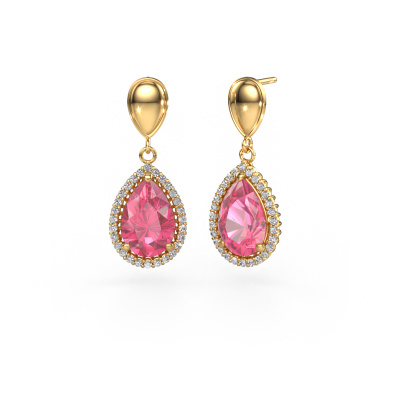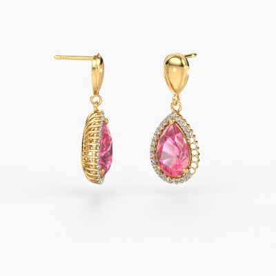 With a pair of exclusive drop earrings, every woman truly stands out. At DiamondsByMe, we create exclusive and extraordinary jewellery and we make use of the finest precious metals and gemstones. These exclusive gold drop earrings are a true work of art! Each tiny detail has been made with patience and passion by our expert jeweller. This requires a keen eye and skilful hand in order for the ring to be carefully created to perfection. And this is exactly what our expert jewellers strive for, perfection! The exquisite pink sapphire are set in a way making them seem to shine even brighter. This gives the drop earrings an extra glamorous look. Shown above are our gold Tilly per 1 drop earrings, set with pear pink sapphire. The Tilly per 1 earrings are made just for you by our master goldsmith in our own artisan studio..