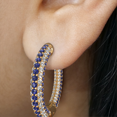 This set of round Hope 13mm hoop earrings are beautiful small hoop earrings to finish off your look. Our expert jewellers combine the latest techniques with ancient craftsmanship. They make your hoop earrings by hand in our own crafting studio. The sapphire of your choosing are set in your hoop earrings with the utmost precision, so light reflects evenly from every angle. In the end you get stunning, unique hoop earrings that match your own style perfectly! Take these gold hoop earrings set with sapphire 1 mm, for example. What could possibly be more beautiful than personally designed luxury hoop earrings, handmade by yours truly? Please, feel free to customize each model by choosing different precious metals and gemstones. This makes your hoop earrings truly unique. These hoop earrings can be customized to your liking. It goes without saying that you can also ask us for help. We are more than willing to assist in designing your luxury hoop earrings. If you like but still have specific wishes concerning customizing your design, such as adding a gemstone which isn't mentioned in the list, feel free to contact us. We will gladly inform you on different options.The Hope 13mm earrings are made to embellish your ears. Each jewel is lovingly made by hand by our goldsmiths.Because we design and deliver our own hoop earrings, we can offer you hoop earrings at a price you won't find anywhere else. hoop earrings are made to order, which helps prevent excess supplies, so we can make you a great price offer. We understand it feels risky, buying your hoop earrings online, but we will gladly assist in the designing process, taking your budget into consideration.To make it easier for you, we offer a 30 day return policy. Check our terms and conditions.