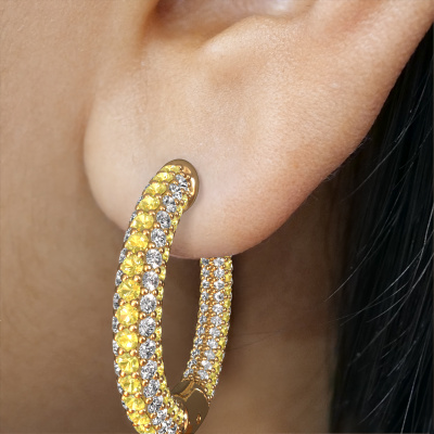 This set of round Hope 13mm hoop earrings are beautiful small hoop earrings to finish off your look. Our expert jewellers combine the latest techniques with ancient craftsmanship. They make your hoop earrings by hand in our own crafting studio. The yellow sapphire of your choosing are set in your hoop earrings with the utmost precision, so light reflects evenly from every angle. In the end you get stunning, unique hoop earrings that match your own style perfectly! Take these gold hoop earrings set with yellow sapphire 1 mm, for example. What could possibly be more beautiful than personally designed luxury hoop earrings, handmade by yours truly? Please, feel free to customize each model by choosing different precious metals and gemstones. This makes your hoop earrings truly unique. These hoop earrings can be customized to your liking. It goes without saying that you can also ask us for help. We are more than willing to assist in designing your luxury hoop earrings. If you like but still have specific wishes concerning customizing your design, such as adding a gemstone which isn't mentioned in the list, feel free to contact us. We will gladly inform you on different options.The Hope 13mm earrings are made to embellish your ears. Each jewel is lovingly made by hand by our goldsmiths.Because we design and deliver our own hoop earrings, we can offer you hoop earrings at a price you won't find anywhere else. hoop earrings are made to order, which helps prevent excess supplies, so we can make you a great price offer. We understand it feels risky, buying your hoop earrings online, but we will gladly assist in the designing process, taking your budget into consideration.To make it easier for you, we offer a 30 day return policy. Check our terms and conditions.