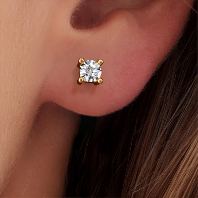Solitaire stud earrings are both a traditional and a trendy piece of jewellery. Solitaire stud earrings have an open prong setting, therefore, light reflects beautifully on the gemstones. Because the diamonds are set high, these traditional stud earrings are a stunning eye-catcher. We will create your solitaire stud earrings by hand with the utmost care in our DiamondsByMe studio. For maximum shine, our goldsmith sets the diamonds in the gold stud earrings with great care. These solitaire stud earrings are set with round diamond of 0.40 crt. De Eline earrings are unique pieces of jewellery because they can be customized to your liking.. The best part of these solitaire stud earrings is that you can customize it to your own liking. Your style, your choice, your stud earrings. On top of that, your traditional gold stud earrings will be made by hand with eco-friendly materials! Please feel free to easily customize the stud earrings, using our online tool.Because we design and deliver our own stud earrings, we can offer you stud earrings at a price you won't find anywhere else. stud earrings are made to order, which helps prevent excess supplies, so we can make you a great price offer. We understand it feels risky, buying your stud earrings online, but we will gladly assist in the designing process, taking your budget into consideration. To make it easier for you, we offer a 30 day return policy. Check our terms and conditions.