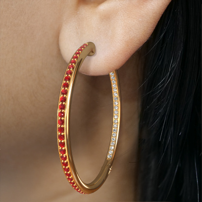 With a pair of exclusive hoop earrings, every woman truly stands out. At DiamondsByMe, we create exclusive and extraordinary jewellery and we make use of the finest precious metals and gemstones. These exclusive gold hoop earrings are a true work of art! Each tiny detail has been made with patience and passion by our expert jeweller. This requires a keen eye and skilful hand in order for the ring to be carefully created to perfection. And this is exactly what our expert jewellers strive for, perfection! The exquisite ruby are set in a way making them seem to shine even brighter. This gives the hoop earrings an extra glamorous look. Shown above are our gold Sina 30mm hoop earrings, set with round ruby. The Sina 30mm earrings are made to embellish your ears. Each jewel is lovingly made by hand by our goldsmiths.. Customized exclusive elegant hoop earrings are the perfect gift! New exquisite designs are added daily by our team of passionate goldsmiths. And each design can be customized. Simply customize the precious metals and the colour of gemstones which will be used, for example. This makes your design of the exclusive Sina 30mm hoop earrings truly unique! After receiving your order, our goldsmiths will start the creative process of making your Sina 30mm hoop earrings. We don't keep stock. This is advantageous because these costs will not be passed on to you. Therefore, we can offer jewellery at exceptionally low prices. To make it easier for you, we offer a 30 day return policy. Check our terms and conditions.