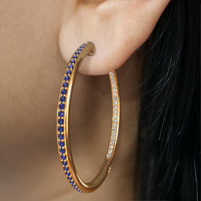With a pair of exclusive hoop earrings, every woman truly stands out. At DiamondsByMe, we create exclusive and extraordinary jewellery and we make use of the finest precious metals and gemstones. These exclusive gold hoop earrings are a true work of art! Each tiny detail has been made with patience and passion by our expert jeweller. This requires a keen eye and skilful hand in order for the ring to be carefully created to perfection. And this is exactly what our expert jewellers strive for, perfection! The exquisite sapphire are set in a way making them seem to shine even brighter. This gives the hoop earrings an extra glamorous look. Shown above are our gold Sina 30mm hoop earrings, set with round sapphire. The Sina 30mm earrings are made to embellish your ears. Each jewel is lovingly made by hand by our goldsmiths.. Customized exclusive elegant hoop earrings are the perfect gift! New exquisite designs are added daily by our team of passionate goldsmiths. And each design can be customized. Simply customize the precious metals and the colour of gemstones which will be used, for example. This makes your design of the exclusive Sina 30mm hoop earrings truly unique! After receiving your order, our goldsmiths will start the creative process of making your Sina 30mm hoop earrings. We don't keep stock. This is advantageous because these costs will not be passed on to you. Therefore, we can offer jewellery at exceptionally low prices. To make it easier for you, we offer a 30 day return policy. Check our terms and conditions.