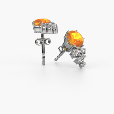 If you are looking for trendy and personal earrings, then these will fit you perfectly. You have the option to add your birthstones to these earrings. Each month has its own birthstone. You may use your own birthstone gemstone or that of your children. A priceless gift, even if it is for yourself. Our expert jeweller will set the selected stones in your earrings with utter precision, so light reflects evenly from every angle. Here, 6 mm round citrin gemstones were used to adorn these white gold graceful Royce earrings. The Royce earrings are passionately made by one of our master goldsmiths.. The best part of these graceful earrings is that you can customize it to your own liking. Your style, your choice, your earrings. On top of that, your trendy white gold earrings will be made by hand with eco-friendly materials! Please feel free to easily customize the earrings, using our online tool. After receiving your order, our goldsmiths will passionately start the creative process of making your earrings in our own studio. Because we don't have a big stockpile, these costs will not be passed on to you. Our pricing is proof of that! We offer top quality jewels at lowest price, guaranteed.To make it easier for you, we offer a 30 day return policy. Check our terms and conditions.