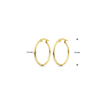 This set of graceful gold Gala 23mm hoop earrings are beautiful small hoop earrings to finish off your look. Our expert jewellers combine the latest techniques with ancient craftsmanship. They make your hoop earrings by hand in our own crafting studio. In the end you get stunning, unique hoop hoop earrings that match your own style perfectly! Customized trendy graceful hoop earrings are the perfect gift! New exquisite designs are added daily by our team of passionate goldsmiths. And each design can be customized. Simply customize the precious metals and the colour of gemstones which will be used, for example. This makes your design of the trendy Gala 23mm hoop earrings truly unique!The Gala 23mm earrings are passionately made by one of our master goldsmiths.After receiving your order, our goldsmiths will passionately start the creative process of making your hoop earrings in our own studio. Because we don't have a big stockpile, these costs will not be passed on to you. Our pricing is proof of that! We offer top quality jewels at lowest price, guaranteed.To make it easier for you, we offer a 30 day return policy. Check our terms and conditions.