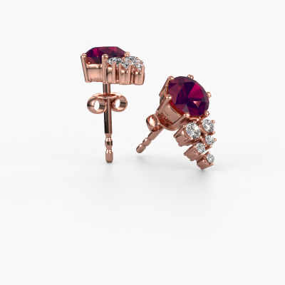 If you are looking for trendy and personal earrings, then these will fit you perfectly. You have the option to add your birthstones to these earrings. Each month has its own birthstone. You may use your own birthstone gemstone or that of your children. A priceless gift, even if it is for yourself. Our expert jeweller will set the selected stones in your earrings with utter precision, so light reflects evenly from every angle. Here, 6 mm round rhodolite gemstones were used to adorn these rose gold graceful Royce earrings. The Royce earrings are passionately made by one of our master goldsmiths.. The best part of these graceful earrings is that you can customize it to your own liking. Your style, your choice, your earrings. On top of that, your trendy rose gold earrings will be made by hand with eco-friendly materials! Please feel free to easily customize the earrings, using our online tool. After receiving your order, our goldsmiths will passionately start the creative process of making your earrings in our own studio. Because we don't have a big stockpile, these costs will not be passed on to you. Our pricing is proof of that! We offer top quality jewels at lowest price, guaranteed.To make it easier for you, we offer a 30 day return policy. Check our terms and conditions.
