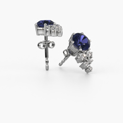 If you are looking for trendy and personal earrings, then these will fit you perfectly. You have the option to add your birthstones to these earrings. Each month has its own birthstone. You may use your own birthstone gemstone or that of your children. A priceless gift, even if it is for yourself. Our expert jeweller will set the selected stones in your earrings with utter precision, so light reflects evenly from every angle. Here, 6 mm round sapphire gemstones were used to adorn these white gold graceful Royce earrings. The Royce earrings are passionately made by one of our master goldsmiths.. The best part of these graceful earrings is that you can customize it to your own liking. Your style, your choice, your earrings. On top of that, your trendy white gold earrings will be made by hand with eco-friendly materials! Please feel free to easily customize the earrings, using our online tool. After receiving your order, our goldsmiths will passionately start the creative process of making your earrings in our own studio. Because we don't have a big stockpile, these costs will not be passed on to you. Our pricing is proof of that! We offer top quality jewels at lowest price, guaranteed.To make it easier for you, we offer a 30 day return policy. Check our terms and conditions.