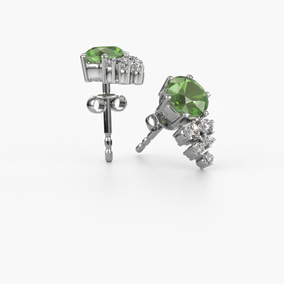 If you are looking for trendy and personal earrings, then these will fit you perfectly. You have the option to add your birthstones to these earrings. Each month has its own birthstone. You may use your own birthstone gemstone or that of your children. A priceless gift, even if it is for yourself. Our expert jeweller will set the selected stones in your earrings with utter precision, so light reflects evenly from every angle. Here, 6 mm round tourmaline green gemstones were used to adorn these white gold graceful Royce earrings. The Royce earrings are passionately made by one of our master goldsmiths.. The best part of these graceful earrings is that you can customize it to your own liking. Your style, your choice, your earrings. On top of that, your trendy white gold earrings will be made by hand with eco-friendly materials! Please feel free to easily customize the earrings, using our online tool. After receiving your order, our goldsmiths will passionately start the creative process of making your earrings in our own studio. Because we don't have a big stockpile, these costs will not be passed on to you. Our pricing is proof of that! We offer top quality jewels at lowest price, guaranteed.To make it easier for you, we offer a 30 day return policy. Check our terms and conditions.