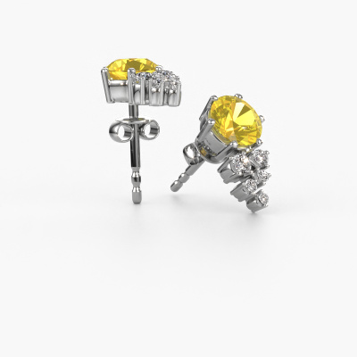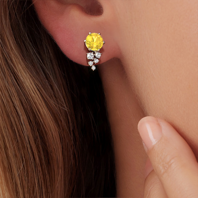 If you are looking for trendy and personal earrings, then these will fit you perfectly. You have the option to add your birthstones to these earrings. Each month has its own birthstone. You may use your own birthstone gemstone or that of your children. A priceless gift, even if it is for yourself. Our expert jeweller will set the selected stones in your earrings with utter precision, so light reflects evenly from every angle. Here, 6 mm round yellow sapphire gemstones were used to adorn these white gold graceful Royce earrings. The Royce earrings are passionately made by one of our master goldsmiths.. The best part of these graceful earrings is that you can customize it to your own liking. Your style, your choice, your earrings. On top of that, your trendy white gold earrings will be made by hand with eco-friendly materials! Please feel free to easily customize the earrings, using our online tool. After receiving your order, our goldsmiths will passionately start the creative process of making your earrings in our own studio. Because we don't have a big stockpile, these costs will not be passed on to you. Our pricing is proof of that! We offer top quality jewels at lowest price, guaranteed.To make it easier for you, we offer a 30 day return policy. Check our terms and conditions.