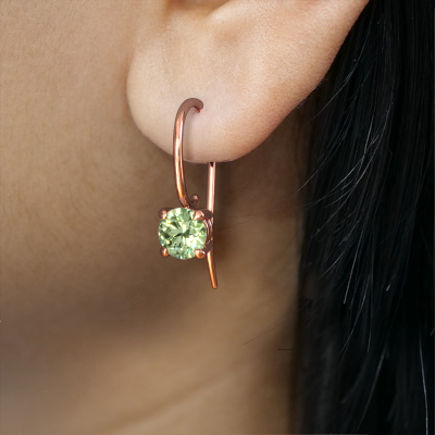 Solitaire drop earrings are modern yet fashionable pieces of jewellery. In solitaire drop earrings, the prong setting is open and only 1 stone is set, which helps reflect light on the gemstone from every angle. Because the green lab grown diamonds are positioned higher, these modern drop earrings become truly eye-catching. We carefully create each detail of these solitaire drop earrings by hand. Our expert goldsmiths set the green lab grown diamonds in these rose gold drop earrings with the utmost precision, so light reflects evenly from every angle. The drop earrings are set with 5 mm round green lab grown diamonds. The Cleo RND earrings are unique pieces of jewellery because they can be customized to your liking.. As soon as you finished designing your modern drop earrings with our online tool, our goldsmiths will start their creative process of making your drop earrings. This will be done with passion and care, according ancient crafting. On top of that, our jewels are made of eco-friendly materials. If you want specific changes made to your Cleo RND drop earrings, that are unavailable in our online tool, please feel free to contact our expert designers. Because we design and deliver our own drop earrings, we can offer you drop earrings at a price you won't find anywhere else. drop earrings are made to order, which helps prevent excess supplies, so we can make you a great price offer. We understand it feels risky, buying your drop earrings online, but we will gladly assist in the designing process, taking your budget into consideration. To make it easier for you, we offer a 30 day return policy. Check our terms and conditions.