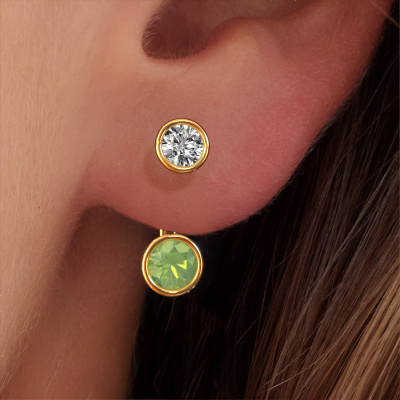 We believe this set of hanging Halle earrings, set with exquisite round peridot, look best when set with diamonds. But the best part is that you get to choose your own birthstones to customize the design Halle gold earrings to your liking. In the example shown above they are set with peridot 6 mm. Each gemstone is selected with great care and the utmost precision for a maximum shine. Because we design and deliver our own earrings, we can offer you earrings at a price you won't find anywhere else. earrings are made to order, which helps prevent excess supplies, so we can make you a great price offer. We understand it feels risky, buying your earrings online, but we will gladly assist in the designing process, taking your budget into consideration.To make it easier for you, we offer a 30 day return policy. Check our terms and conditions.