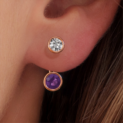 We believe this set of hanging Halle earrings, set with exquisite round amethyst, look best when set with diamonds. But the best part is that you get to choose your own birthstones to customize the design Halle rose gold earrings to your liking. In the example shown above they are set with amethyst 6 mm. Each gemstone is selected with great care and the utmost precision for a maximum shine. Because we design and deliver our own earrings, we can offer you earrings at a price you won't find anywhere else. earrings are made to order, which helps prevent excess supplies, so we can make you a great price offer. We understand it feels risky, buying your earrings online, but we will gladly assist in the designing process, taking your budget into consideration.To make it easier for you, we offer a 30 day return policy. Check our terms and conditions.