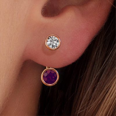 We believe this set of hanging Halle earrings, set with exquisite round rhodolite, look best when set with diamonds. But the best part is that you get to choose your own birthstones to customize the design Halle rose gold earrings to your liking. In the example shown above they are set with rhodolite 6 mm. Each gemstone is selected with great care and the utmost precision for a maximum shine. Because we design and deliver our own earrings, we can offer you earrings at a price you won't find anywhere else. earrings are made to order, which helps prevent excess supplies, so we can make you a great price offer. We understand it feels risky, buying your earrings online, but we will gladly assist in the designing process, taking your budget into consideration.To make it easier for you, we offer a 30 day return policy. Check our terms and conditions.