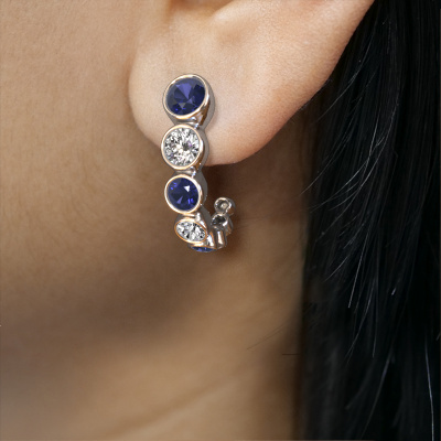 We believe this set of hanging Suzie stud earrings, set with exquisite round sapphire, look best when set with diamonds. But the best part is that you get to choose your own birthstones to customize the exclusive Suzie white gold stud earrings to your liking. In the example shown above they are set with sapphire 3.8 mm. Each gemstone is selected with great care and the utmost precision for a maximum shine. After receiving your order, our goldsmiths will passionately start the creative process of making your stud earrings in our own studio. Because we don't have a big stockpile, these costs will not be passed on to you. Our pricing is proof of that! We offer top quality jewels at lowest price, guaranteed.To make it easier for you, we offer a 30 day return policy. Check our terms and conditions.