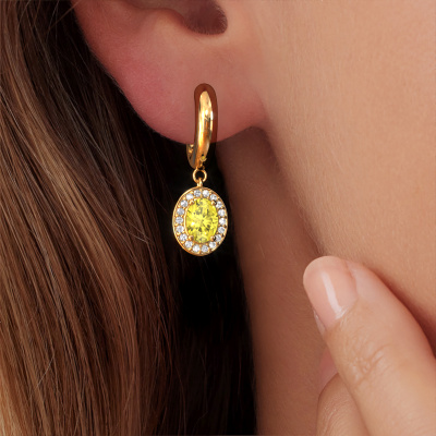 What could possibly be more stunning than a pair of stunning drop earrings? These gold Annett drop earrings are a true eye-catcher. These halo drop earrings are set with oval yellow lab grown diamond. We collaborate with the best suppliers of gemstones and they select our gemstones with great care. Your drop earrings are made by hand in our own artisan studio by our expert goldsmiths. What could possibly be more beautiful than personally designed luxury drop earrings, handmade by yours truly? Please, feel free to customize each model by choosing different precious metals and gemstones. This makes your drop earrings truly unique. These drop earrings can be customized to your liking. It goes without saying that you can also ask us for help. We are more than willing to assist in designing your luxury drop earrings. If you like but still have specific wishes concerning customizing your design, such as adding a gemstone which isn't mentioned in the list, feel free to contact us. We will gladly inform you on different options.Because we design and deliver our own drop earrings, we can offer you drop earrings at a price you won't find anywhere else. drop earrings are made to order, which helps prevent excess supplies, so we can make you a great price offer. We understand it feels risky, buying your drop earrings online, but we will gladly assist in the designing process, taking your budget into consideration.To make it easier for you, we offer a 30 day return policy. Check our terms and conditions.