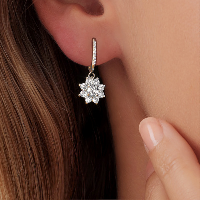 What could possibly be more stunning than a pair of stunning drop earrings? These platinum Camille 2 drop earrings are a true eye-catcher. These cluster drop earrings are set with round diamond. We collaborate with the best suppliers of gemstones and they select our gemstones with great care. Your drop earrings are made by hand in our own artisan studio by our expert goldsmiths. What could possibly be more beautiful than personally designed luxury drop earrings, handmade by yours truly? Please, feel free to customize each model by choosing different precious metals and gemstones. This makes your drop earrings truly unique. These drop earrings can be customized to your liking. It goes without saying that you can also ask us for help. We are more than willing to assist in designing your luxury drop earrings. If you like but still have specific wishes concerning customizing your design, such as adding a gemstone which isn't mentioned in the list, feel free to contact us. We will gladly inform you on different options.By using a combination of the latest modern techniques, combined with ancient crafting, we can make all our drop earrings in our own studio. Each jewel is made to order. This is advantageous because we can offer you a price you won't find anywhere else.To make it easier for you, we offer a 30 day return policy. Check our terms and conditions.