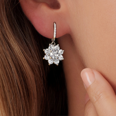 What could possibly be more stunning than a pair of stunning drop earrings? These white gold Camille 2 drop earrings are a true eye-catcher. These cluster drop earrings are set with round diamond. We collaborate with the best suppliers of gemstones and they select our gemstones with great care. Your drop earrings are made by hand in our own artisan studio by our expert goldsmiths. What could possibly be more beautiful than personally designed luxury drop earrings, handmade by yours truly? Please, feel free to customize each model by choosing different precious metals and gemstones. This makes your drop earrings truly unique. These drop earrings can be customized to your liking. It goes without saying that you can also ask us for help. We are more than willing to assist in designing your luxury drop earrings. If you like but still have specific wishes concerning customizing your design, such as adding a gemstone which isn't mentioned in the list, feel free to contact us. We will gladly inform you on different options.By using a combination of the latest modern techniques, combined with ancient crafting, we can make all our drop earrings in our own studio. Each jewel is made to order. This is advantageous because we can offer you a price you won't find anywhere else.To make it easier for you, we offer a 30 day return policy. Check our terms and conditions.