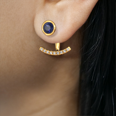 What could possibly be more stunning than a pair of stunning earrings? These gold Rosetta earrings are a true eye-catcher. These graceful earrings are set with round sapphire. We collaborate with the best suppliers of gemstones and they select our gemstones with great care. Your earrings are made by hand in our own artisan studio by our expert goldsmiths. The best part of these graceful earrings is that you can customize it to your own liking. Your style, your choice, your earrings. On top of that, your modern gold earrings will be made by hand with eco-friendly materials! Please feel free to easily customize the earrings, using our online tool.By using our modern techniques, we can design and customize the finest quality jewels with the utmost care for you. Our earrings are always priced 30 percent lower than other jewellers. We make earrings to order so we don't have to maintain a large stock. If you have a certain budget, we are more than happy to advice you accordingly.To make it easier for you, we offer a 30 day return policy. Check our terms and conditions.