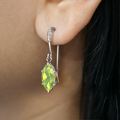 Each modern woman should own her own pair of fashionable drop earrings. Buy them from DiamondsByMe. In order to create our exquisite jewels, our expert goldsmiths use the best precious metals and the finest gemstones. Take this fashionable white gold peridot set of Laurie MRQ 2 drop earrings, for example. Each peridot is selected with great care, because we believe your drop earrings should only be adorned with the finest peridot gemstones. Our artisan goldsmiths create your drop earrings in our own crafting studio and they set the peridot in the drop earrings with the utmost care. Subsequently, they are crafted and polished until it is evident: the perfect drop earrings are done! The Laurie MRQ 2 earrings are passionately made by one of our master goldsmiths.. Customized fashionable affordable drop earrings are the perfect gift! New exquisite designs are added daily by our team of passionate goldsmiths. And each design can be customized. Simply customize the precious metals and the colour of gemstones which will be used, for example. This makes your design of the fashionable Laurie MRQ 2 drop earrings truly unique! After receiving your order, our goldsmiths will passionately start the creative process of making your drop earrings in our own studio. Because we don't have a big stockpile, these costs will not be passed on to you. Our pricing is proof of that! We offer top quality jewels at lowest price, guaranteed. To make it easier for you, we offer a 30 day return policy. Check our terms and conditions.