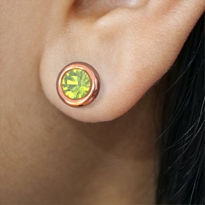 The round rose gold Lieke RND stud earrings are set with stunning round peridot. These stud earrings are ideally combined with coloured gemstones, but if you prefer other gemstones, feel free to choose from our collection. Our expert jewellers would love to create handmade stud earrings for you in our own crafting studio. We use a unique concept, a perfect combination of ancient craftsmanship and the latest modern techniques. This enables us to design your stud earrings to perfection. The stud earrings, as shown here, are set with peridot 4 mm. How do you like these modern rose gold stud earrings? Simply customize this Lieke RND stud earrings, using our online tool. Subsequently, your personal round Lieke RND stud earrings will be made by hand by our goldsmiths. Precious metals and gemstones can be customized to your liking. Do you have specific preferences which are unavailable in our online tool? Please feel free to contact us. We will customize your personal modern stud earrings to your liking.De Lieke RND earrings are made just for you by our master goldsmith in our own artisan studio.Because we design and deliver our own stud earrings, we can offer you stud earrings at a price you won't find anywhere else. stud earrings are made to order, which helps prevent excess supplies, so we can make you a great price offer. We understand it feels risky, buying your stud earrings online, but we will gladly assist in the designing process, taking your budget into consideration.To make it easier for you, we offer a 30 day return policy. Check our terms and conditions.