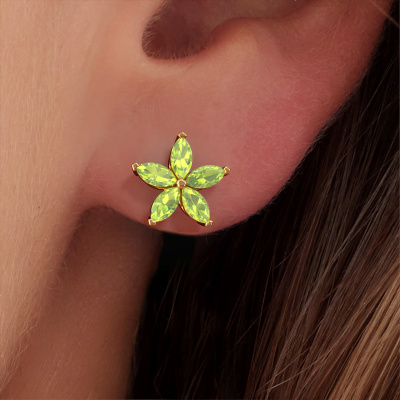 How would you describe your style? Are you looking for something slightly different? These unique cluster gold stud earrings are unique and created by our expert goldsmiths. These unique stud earrings are set with peridot. Each of the peridot is carefully selected, because we believe your stud earrings should be adorned with nothing but the most exquisite gemstones. Wouldn't you agree? The Sylvana earrings are made just for you by our master goldsmith in our own artisan studio.. Our goldsmiths passionately create your customized stud earrings to your liking with the utmost care. The gold set stud earrings, as shown here, can be customized using our online tool. Feel free to ask our jewel designers for assistance if you want changes made which are unavailable in our online tool. We are happy to answer your questions.Are you on a budget? Please feel free to contact us, so we can go discuss your options. We offer our stud earrings at guaranteed best price, because we make them to order. You won't find such a price anywhere else! To make it easier for you, we offer a 30 day return policy. Check our terms and conditions.