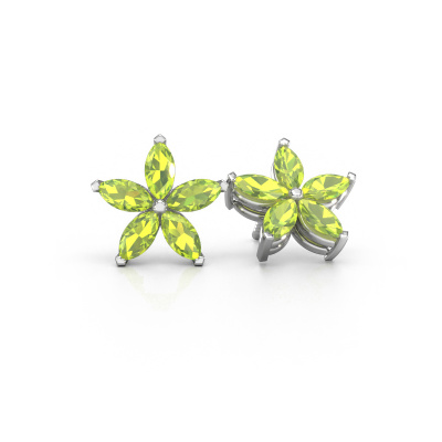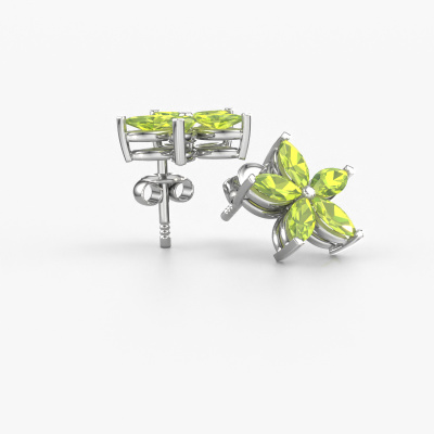 How would you describe your style? Are you looking for something slightly different? These unique cluster white gold stud earrings are unique and created by our expert goldsmiths. These unique stud earrings are set with peridot. Each of the peridot is carefully selected, because we believe your stud earrings should be adorned with nothing but the most exquisite gemstones. Wouldn't you agree? The Sylvana earrings are made just for you by our master goldsmith in our own artisan studio.. Our goldsmiths passionately create your customized stud earrings to your liking with the utmost care. The white gold set stud earrings, as shown here, can be customized using our online tool. Feel free to ask our jewel designers for assistance if you want changes made which are unavailable in our online tool. We are happy to answer your questions.Are you on a budget? Please feel free to contact us, so we can go discuss your options. We offer our stud earrings at guaranteed best price, because we make them to order. You won't find such a price anywhere else! To make it easier for you, we offer a 30 day return policy. Check our terms and conditions.