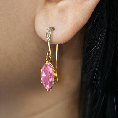 Each modern woman should own her own pair of fashionable drop earrings. Buy them from DiamondsByMe. In order to create our exquisite jewels, our expert goldsmiths use the best precious metals and the finest gemstones. Take this fashionable gold pink sapphire set of Laurie MRQ 2 drop earrings, for example. Each pink sapphire is selected with great care, because we believe your drop earrings should only be adorned with the finest pink sapphire gemstones. Our artisan goldsmiths create your drop earrings in our own crafting studio and they set the pink sapphire in the drop earrings with the utmost care. Subsequently, they are crafted and polished until it is evident: the perfect drop earrings are done! The Laurie MRQ 2 earrings are passionately made by one of our master goldsmiths.. Customized fashionable affordable drop earrings are the perfect gift! New exquisite designs are added daily by our team of passionate goldsmiths. And each design can be customized. Simply customize the precious metals and the colour of gemstones which will be used, for example. This makes your design of the fashionable Laurie MRQ 2 drop earrings truly unique! After receiving your order, our goldsmiths will passionately start the creative process of making your drop earrings in our own studio. Because we don't have a big stockpile, these costs will not be passed on to you. Our pricing is proof of that! We offer top quality jewels at lowest price, guaranteed. To make it easier for you, we offer a 30 day return policy. Check our terms and conditions.