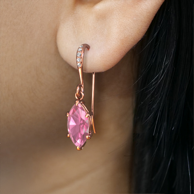 Each modern woman should own her own pair of fashionable drop earrings. Buy them from DiamondsByMe. In order to create our exquisite jewels, our expert goldsmiths use the best precious metals and the finest gemstones. Take this fashionable rose gold pink sapphire set of Laurie MRQ 2 drop earrings, for example. Each pink sapphire is selected with great care, because we believe your drop earrings should only be adorned with the finest pink sapphire gemstones. Our artisan goldsmiths create your drop earrings in our own crafting studio and they set the pink sapphire in the drop earrings with the utmost care. Subsequently, they are crafted and polished until it is evident: the perfect drop earrings are done! The Laurie MRQ 2 earrings are passionately made by one of our master goldsmiths.. Customized fashionable affordable drop earrings are the perfect gift! New exquisite designs are added daily by our team of passionate goldsmiths. And each design can be customized. Simply customize the precious metals and the colour of gemstones which will be used, for example. This makes your design of the fashionable Laurie MRQ 2 drop earrings truly unique! After receiving your order, our goldsmiths will passionately start the creative process of making your drop earrings in our own studio. Because we don't have a big stockpile, these costs will not be passed on to you. Our pricing is proof of that! We offer top quality jewels at lowest price, guaranteed. To make it easier for you, we offer a 30 day return policy. Check our terms and conditions.