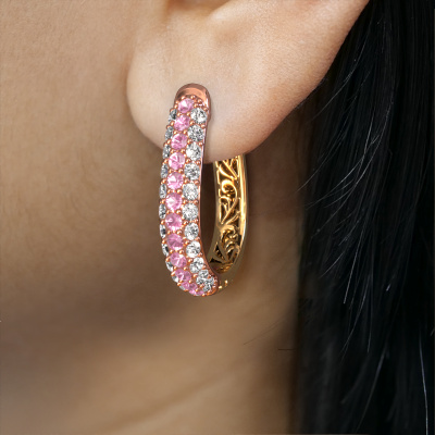 This set of orbs Danika 12.5 A hoop earrings are beautiful small hoop earrings to finish off your look. Our expert jewellers combine the latest techniques with ancient craftsmanship. They make your hoop earrings by hand in our own crafting studio. The pink sapphire of your choosing are set in your hoop earrings with the utmost precision, so light reflects evenly from every angle. In the end you get stunning, unique hoop earrings that match your own style perfectly! Take these rose gold hoop earrings set with pink sapphire 1.7 mm, for example. The best part of these orbs hoop earrings is that you can customize it to your own liking. Your style, your choice, your hoop earrings. On top of that, your classic rose gold hoop earrings will be made by hand with eco-friendly materials! Please feel free to easily customize the hoop earrings, using our online tool.The Danika 12.5 A made just for you, with great attention to detail and design.By using our modern techniques, we can design and customize the finest quality jewels with the utmost care for you. Our hoop earrings are always priced 30 percent lower than other jewellers. We make hoop earrings to order so we don't have to maintain a large stock. If you have a certain budget, we are more than happy to advice you accordingly.To make it easier for you, we offer a 30 day return policy. Check our terms and conditions.