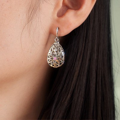 How would you describe your style? Are you looking for something slightly different? These unique filigree white gold drop earrings are unique and created by our expert goldsmiths. These unique drop earrings are set with pink sapphire. Each of the pink sapphire is carefully selected, because we believe your drop earrings should be adorned with nothing but the most exquisite gemstones. Wouldn't you agree? The Idalia 2 earrings are unique pieces of jewellery because they can be customized to your liking.. Our goldsmiths passionately create your customized drop earrings to your liking with the utmost care. The white gold set drop earrings, as shown here, can be customized using our online tool. Feel free to ask our jewel designers for assistance if you want changes made which are unavailable in our online tool. We are happy to answer your questions.After receiving your order, our goldsmiths will start the creative process of making your Idalia 2 drop earrings. We don't keep stock. This is advantageous because these costs will not be passed on to you. Therefore, we can offer jewellery at exceptionally low prices. To make it easier for you, we offer a 30 day return policy. Check our terms and conditions.