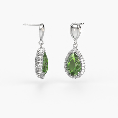 With a pair of exclusive drop earrings, every woman truly stands out. At DiamondsByMe, we create exclusive and extraordinary jewellery and we make use of the finest precious metals and gemstones. These exclusive platinum drop earrings are a true work of art! Each tiny detail has been made with patience and passion by our expert jeweller. This requires a keen eye and skilful hand in order for the ring to be carefully created to perfection. And this is exactly what our expert jewellers strive for, perfection! The exquisite tourmaline green are set in a way making them seem to shine even brighter. This gives the drop earrings an extra glamorous look. Shown above are our platinum Tilly per 1 drop earrings, set with pear tourmaline green. The Tilly per 1 earrings are made just for you by our master goldsmith in our own artisan studio.. As soon as you finished designing your exclusive drop earrings with our online tool, our goldsmiths will start their creative process of making your drop earrings. This will be done with passion and care, according ancient crafting. On top of that, our jewels are made of eco-friendly materials. If you want specific changes made to your Tilly per 1 drop earrings, that are unavailable in our online tool, please feel free to contact our expert designers. Because we design and deliver our own drop earrings, we can offer you drop earrings at a price you won't find anywhere else. drop earrings are made to order, which helps prevent excess supplies, so we can make you a great price offer. We understand it feels risky, buying your drop earrings online, but we will gladly assist in the designing process, taking your budget into consideration. To make it easier for you, we offer a 30 day return policy. Check our terms and conditions.