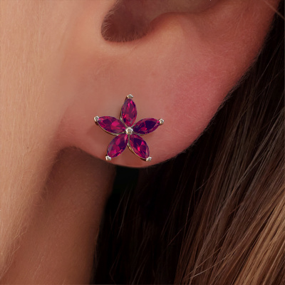 How would you describe your style? Are you looking for something slightly different? These unique cluster platinum stud earrings are unique and created by our expert goldsmiths. These unique stud earrings are set with rhodolite. Each of the rhodolite is carefully selected, because we believe your stud earrings should be adorned with nothing but the most exquisite gemstones. Wouldn't you agree? The Sylvana earrings are made just for you by our master goldsmith in our own artisan studio.. Our goldsmiths passionately create your customized stud earrings to your liking with the utmost care. The platinum set stud earrings, as shown here, can be customized using our online tool. Feel free to ask our jewel designers for assistance if you want changes made which are unavailable in our online tool. We are happy to answer your questions.Are you on a budget? Please feel free to contact us, so we can go discuss your options. We offer our stud earrings at guaranteed best price, because we make them to order. You won't find such a price anywhere else! To make it easier for you, we offer a 30 day return policy. Check our terms and conditions.